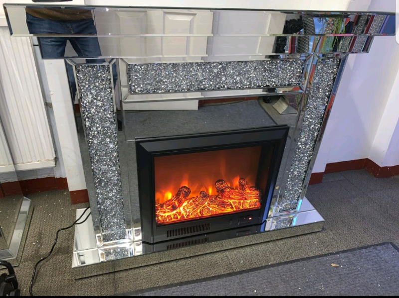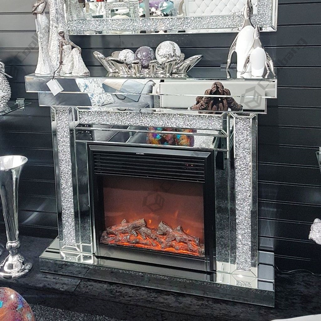 Our range includes bestselling mirrored tv media units, mirrored coffee tables and mirrored bedside tables. Mirrored crushed diamond fireplace mirrored fireplace crushed diamond. Can be paired up with the matching side tables, coffee tables, and other small furnishings. The venice fireplace will take pride of place in the most stylish home. Crushed crystal fireplace with electric fire.
